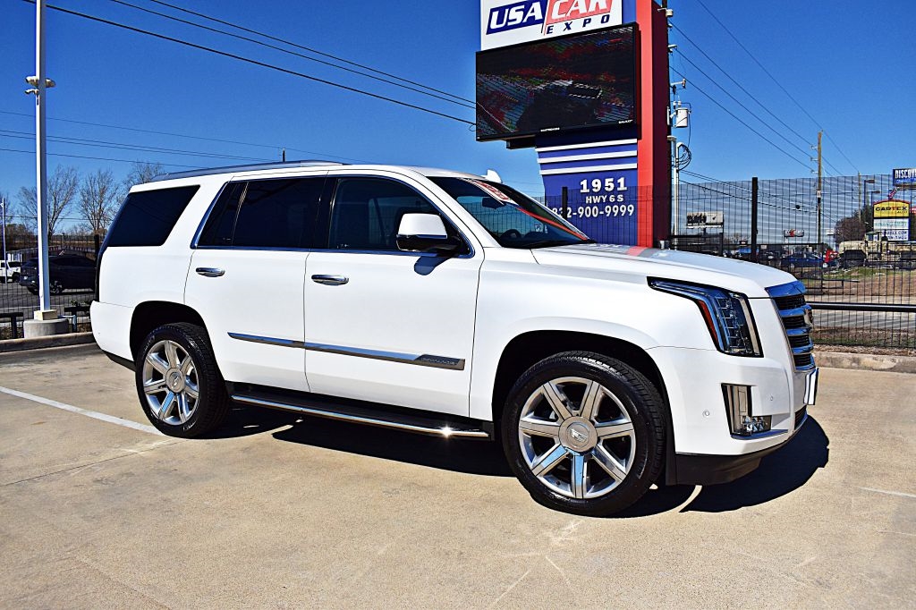 Cruise through town in luxurious style with this sleek 2017 White Cadillac Escalade. This beauty is not just a car - it's a statement! Whether you're running errands or heading out on a road trip, this Escalade will turn heads wherever you go. Plus, peace of mind comes standard with a Carfax report available for your perusal. This means you can hit the road without any worry about the vehicle's history. So go ahead, buckle up and enjoy the smooth ride of this Escalade as you blast your favorite tunes through the premium sound system. The spacious interior is perfect for transporting your family or friends in comfort, while the powerful engine ensures a thrilling driving experience every time you hit the gas. With its stunning white exterior and impeccable design, this Escalade is sure to make you the envy of the neighborhood. Don't miss your chance to own this stunning piece of automotive excellence - come take it for a spin today and experience the luxury for yourself!